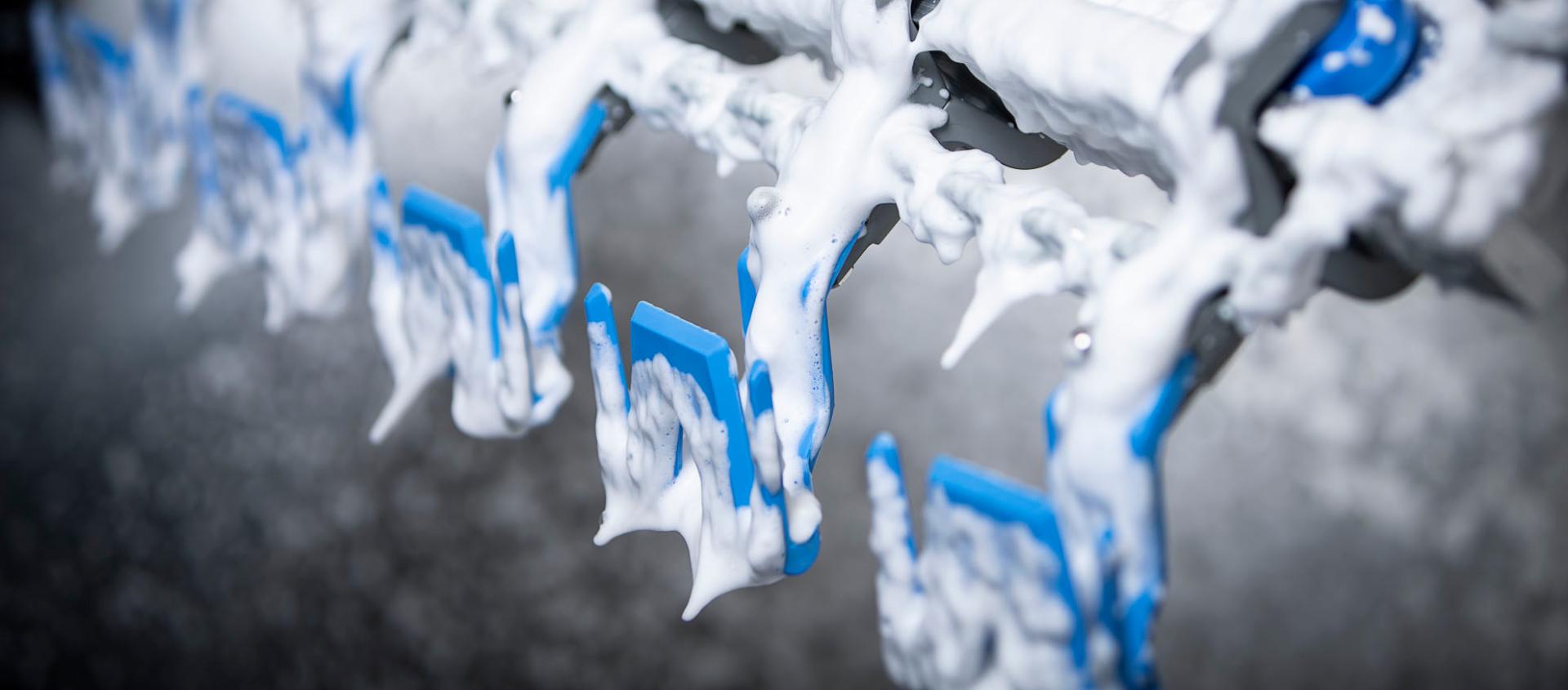 Con un sistema de limpieza automatizado, los sistemas de boquillas se colocan en ángulos ajustados para permitir la limpieza de cada ranura.