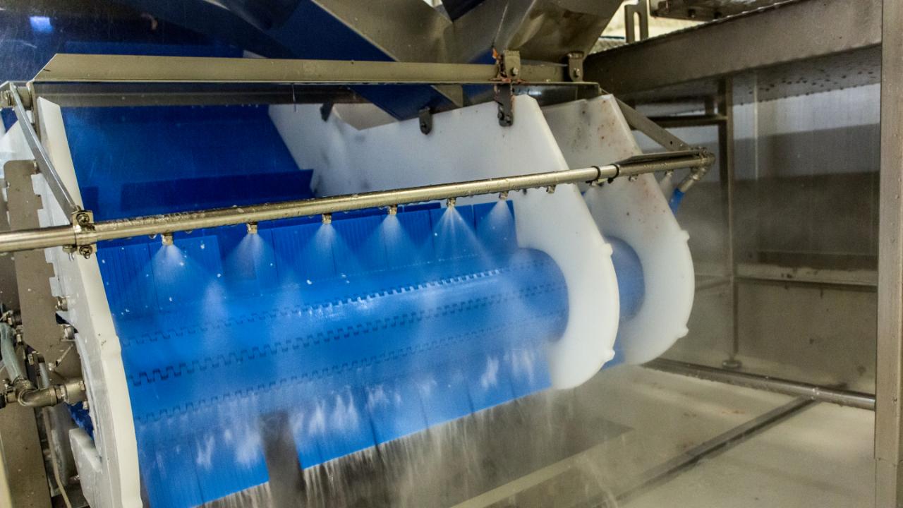 La empresa marina noruega Lerøy ha integrado la limpieza automatizada de las cintas transportadoras en su producción para optimizar sus procesos de limpieza.