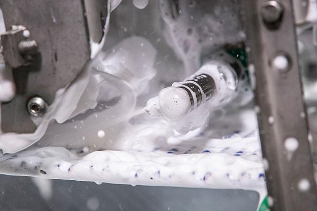 Cuando se ha raspado el material de arrastre, la tierra y los residuos se quedan atascados en cada muesca y ranura de la banda, tanto en la superficie externa como en la interna. Las bacterias se acumulan rápidamente y deshacerse de ellas manualmente es un gran reto. La limpieza manual de las cintas transportadoras es una tarea difícil y que requiere mucho tiempo, y lo que parece ser una cinta limpia rara vez lo es.