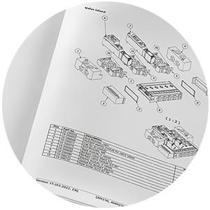 Los planos de cada sistema especifican todas las piezas con detalle, con número de artículo, posición y cantidad, lo que facilita el pedido de las piezas de repuesto correctas.